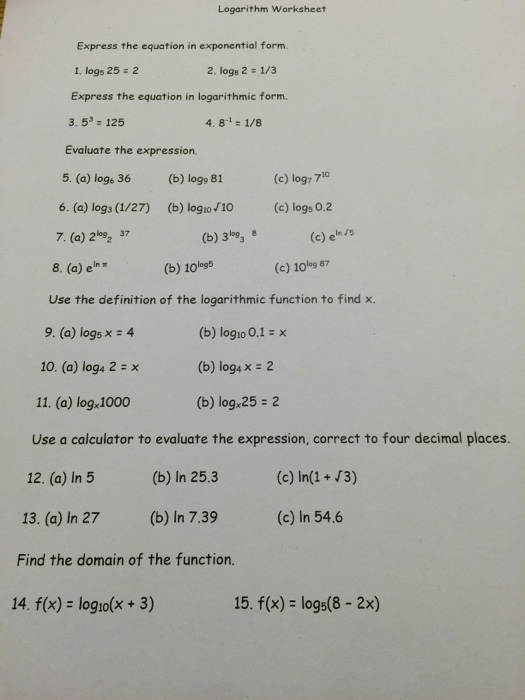 Logarithm Worksheet Algebra 2 / Exponential And Logarithmic Functions Worksheet :. Worksheet by kuta software llc. Worksheet by kuta software llc. 2017 kuta software l l c. Yay math in studio returns for a dive into common logarithms. 8.7 solving natural log equations.